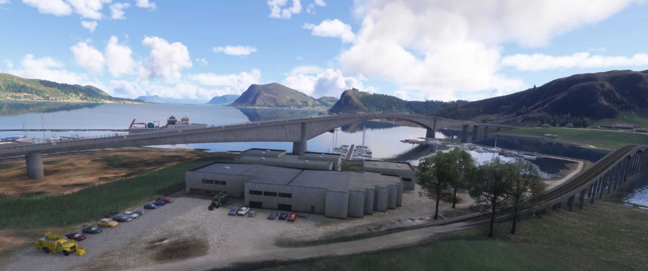 I have removed the default bridges in Stokksund, close til Ulsteinvik and ENAL, and replaced them with bridges looking more like real life. I have also fixed the marina, added boats, cars and done some terraforming of the terrain.